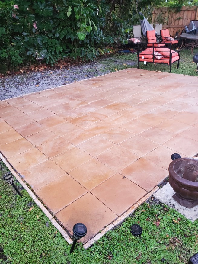 What I will say is this- if you spray in a sweeping motion and only do on initial coat, allow it to dry about 30 mins then go back over it it does not dry splotchy. Also, DO NOT try and do it in high heat or humidity. I live in South Florida and noticed most of the reviews commented about the heat and humidity affecting the look. It was a cool 72 degrees the evening I did this. It dried completely and the fabric didn’t feel crunchy or hard. It has also rained super heavy several times since I painted them and they still look the same. Overall I will say I LOVE the way my chairs and cushion turned out and how they now match the rest of my decor. Of course DIY home projects NEVER end. Not only have I also painted the walkway tiles, I’ve decided to stain the front porch and walkway as well so pray for a sista please.