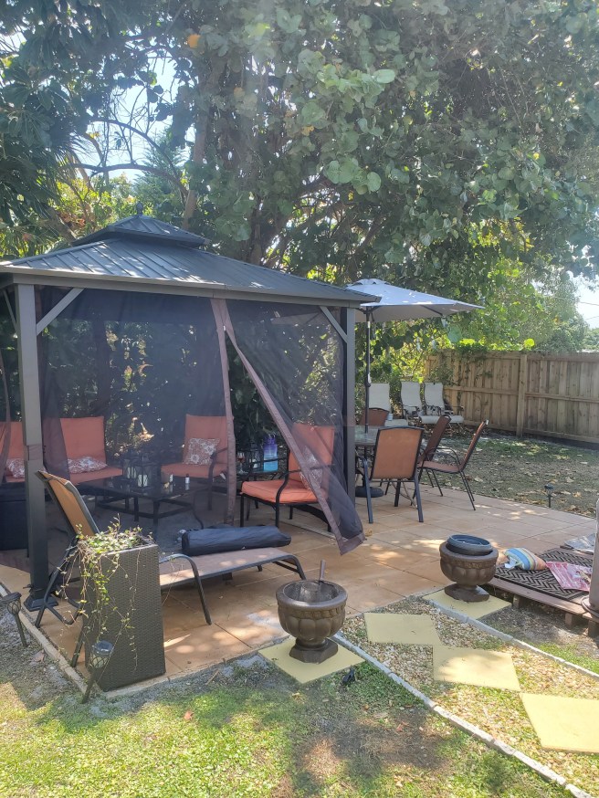 I know last year I told y’all about how coronavirus had me doing all kinds of things I never thought I’d be doing (kinda like when I lost my job in 2019 and started my side hustle). I’ve fenced in the back yard, added a patio, created 3 or 4 garden beds, added a stepping stone walkway, a gazebo, table, chairs, patio furniture that had been in boxes in my garage for nearly 3 years, started going to FSU to get my MPA, revamped my business logo and website, added a new product that is sellin like crazy, and revamped the whole back yard once again including the hardtop gazebo I’ve always wanted.