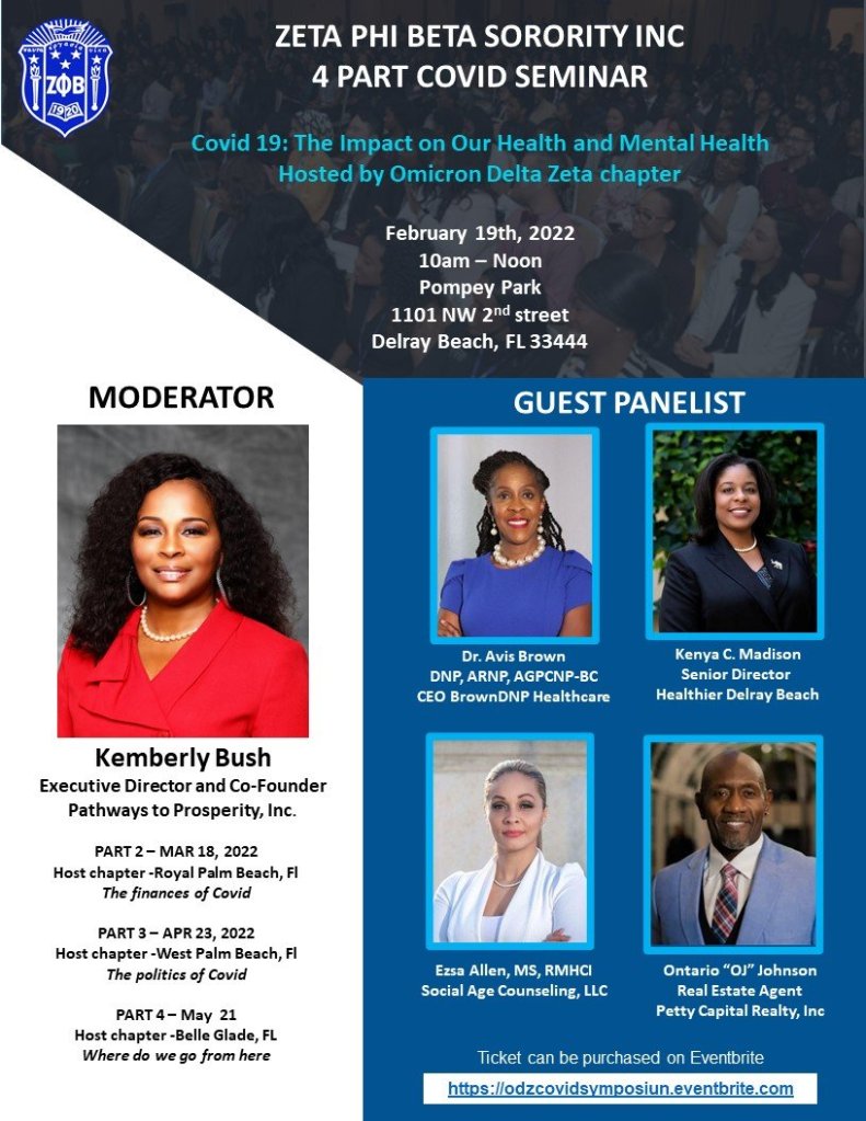 Zeta Phi Beta Sorority, Inc. Omicron Delta Zeta Chapter would like for you to join us as we bring our community together with subject matter experts to discuss how COVID-19 has impacted our lives and ways to cope moving forward.